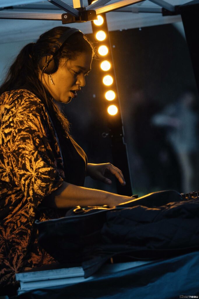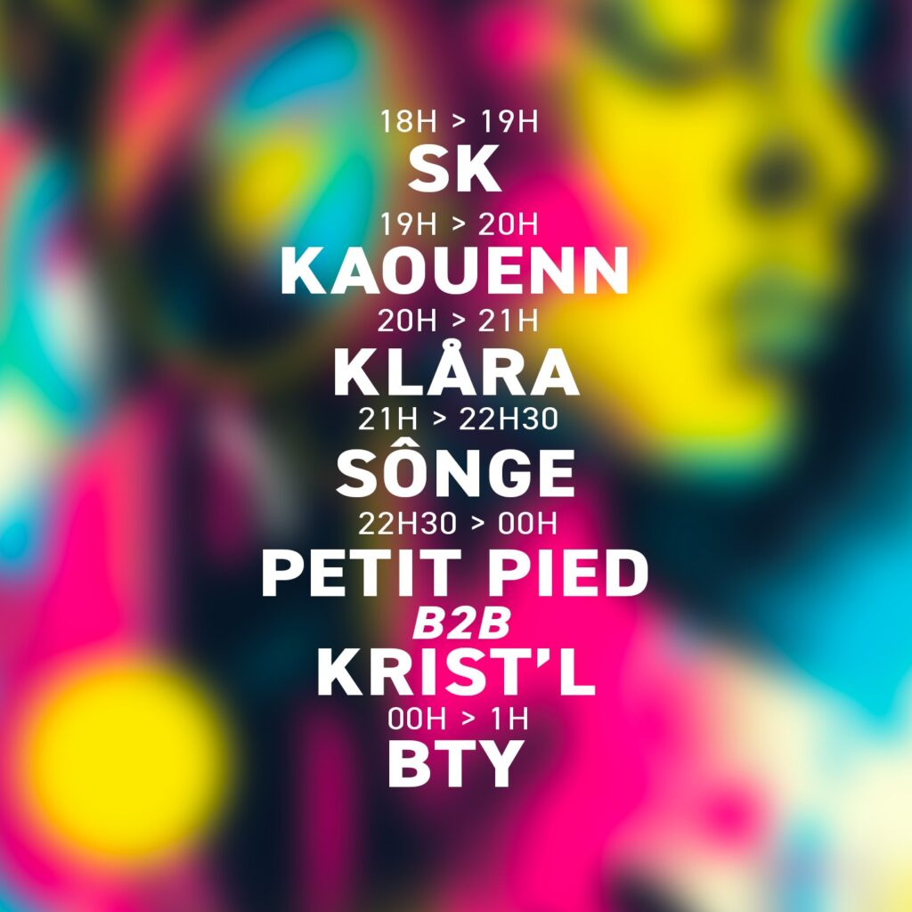 La soirée s’est poursuivie sur l’Esplanade François Mitterrand avec une programmation exclusivement féminine. De 18h à 1h, des artistes issues de la scène électronique locale et nationale ont captivé le public :